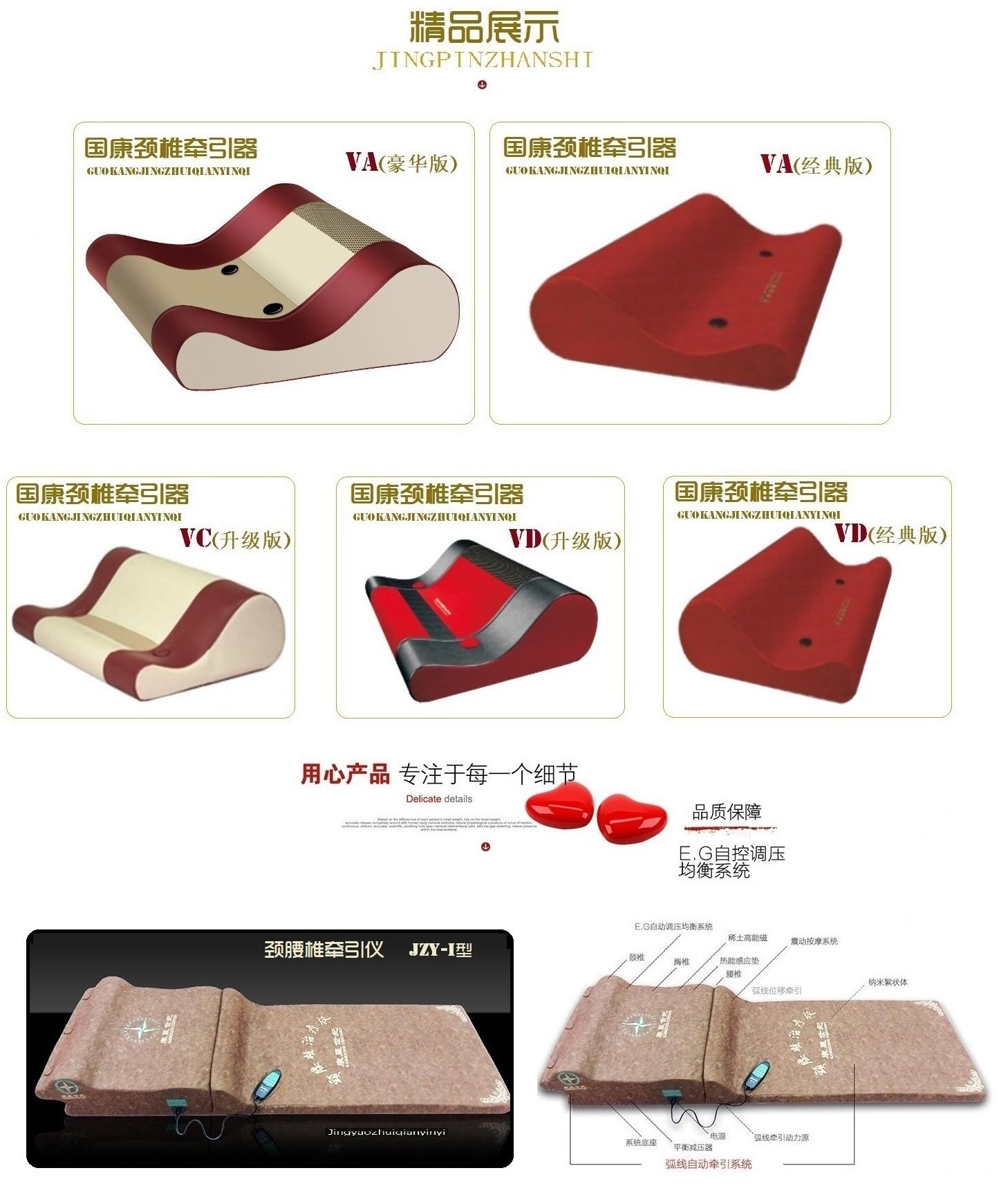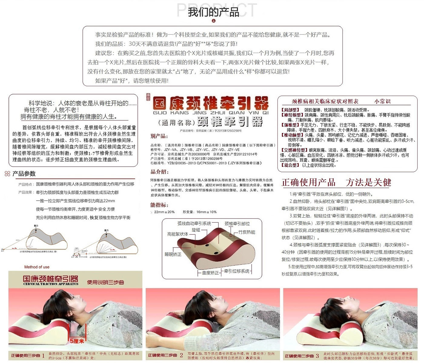 产品特点:国康颈椎牵引器利用人体头部和颈椎的重力转换为弧线位移牵引力;