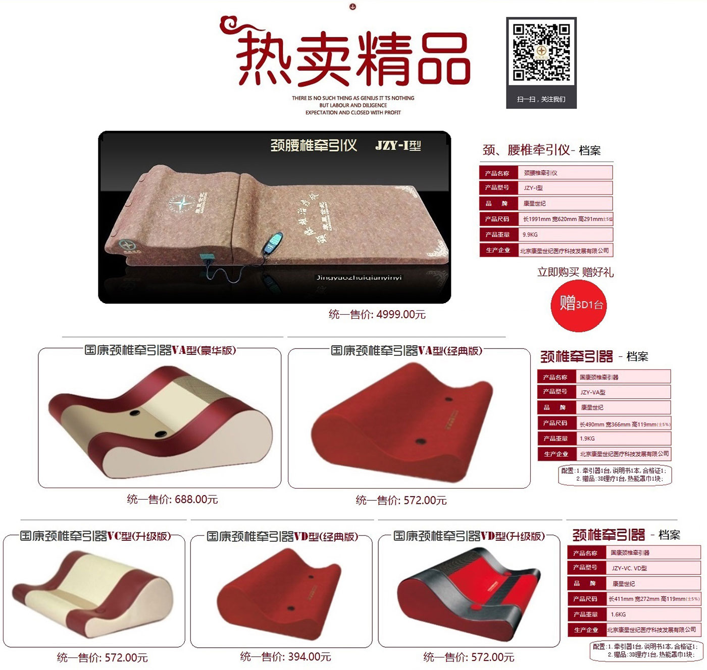 配置:1.牵引器1台,说明书1本,合格证1; 2.赠品:3D理疗1台,热能罩巾1块;