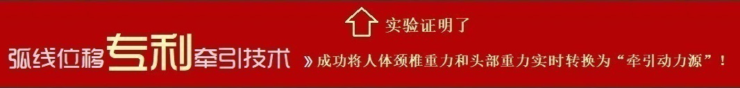 首创弧线位移牵引专利技求,是根据每个人体头部重量的差异,依靠头部自重, 精准释放出符合人体颈椎自然生理曲度的位移牵引力,持续、均匀、精准的牵开颈椎椎间隙,随着椎间隙增宽, 缓解椎间盘内部压力,减轻椎间盘突出对神经根等组织的压力和刺激;使颈椎1-7节椎骨形成自然生理曲线的状态;逐步矫正扭曲变直的颈椎生理曲线。